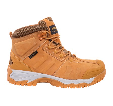 Featuring full-grain cow leather in honey, this waterproof safety boot combines style with resilience. It’s fortified with a steel toe cap, anti-penetration midsole, and TPU toe guard for reliable performance. Comfort insoles and a padded collar ensure all-day freshness and comfort in challenging conditions