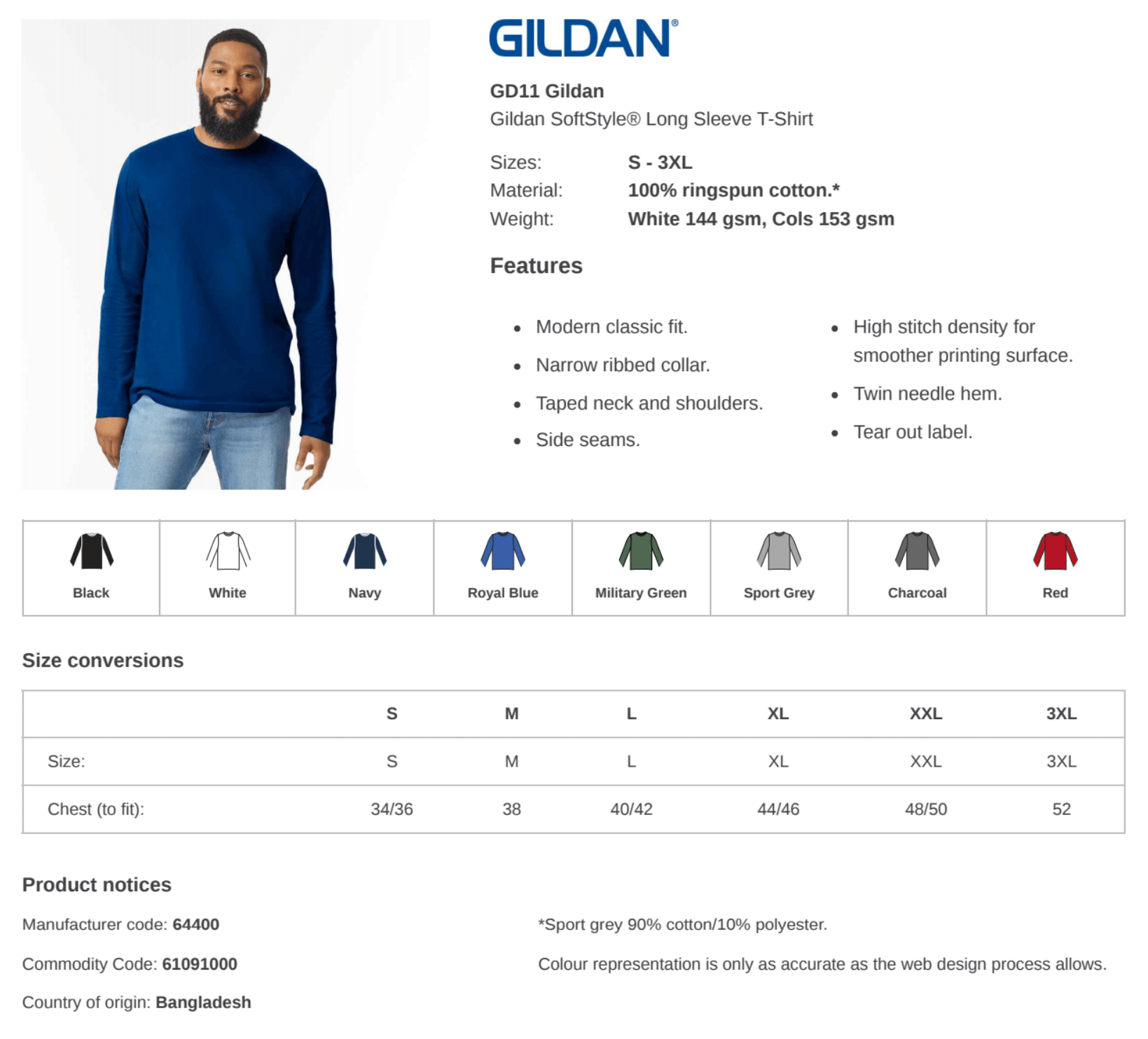 | Colour | G Black, G Charcoal, G Military Green, G Navy, G Red, G Royal, G Sport Grey, G White |