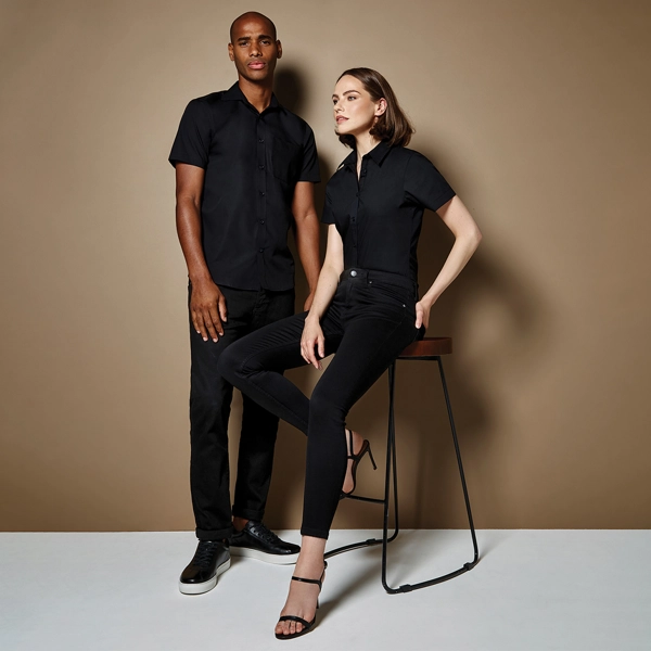 Offering a modern tailored fit, this versatile short sleeved business shirt features a modern cutaway collar and chest pocket. Available in a wide range of colours to suit you’re corporate branding featuring a modern cutaway collar and chest pocket. For added durability the Shirt is twin needle stitched at the sleeves and side seams offering excellent shape retention.