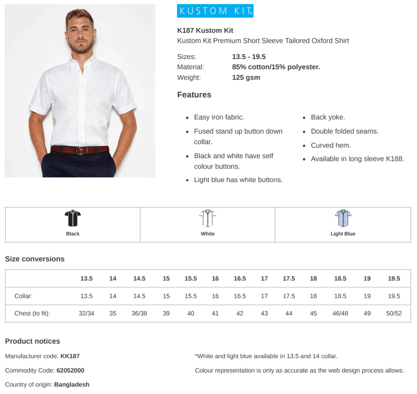This short sleeve shirt fulfils all expectations of a Premium Oxford. It’s high quality cotton rich fabric is highly durable and suitable for all corporate environments. Also features a Fused stand up button down collar with a Rounded hem. To add to the durability this shirt is also twin needle stitched on the sleeves and side seams.