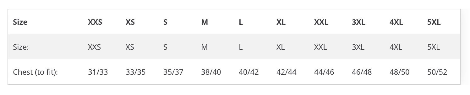 | Sizes | XXS, XS, S, M, L, XL, 2XL, 3XL, 4XL, 5XL |
