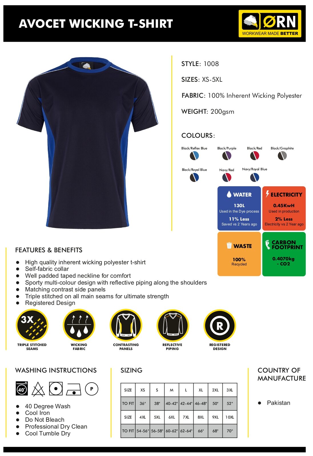 This high quality T Shirt by Orn has superior wicking properties keeping you cool and calm under pressure or on a warm summers day. With its Sporty Multi colour design and high visibility along the shoulders you are sure to stand out in the crowd. Please also see the Matching Avocet polycotton polo shirt, polyester polo shirt, quarter zip sweatshirt and soft shell for the full corporate look!