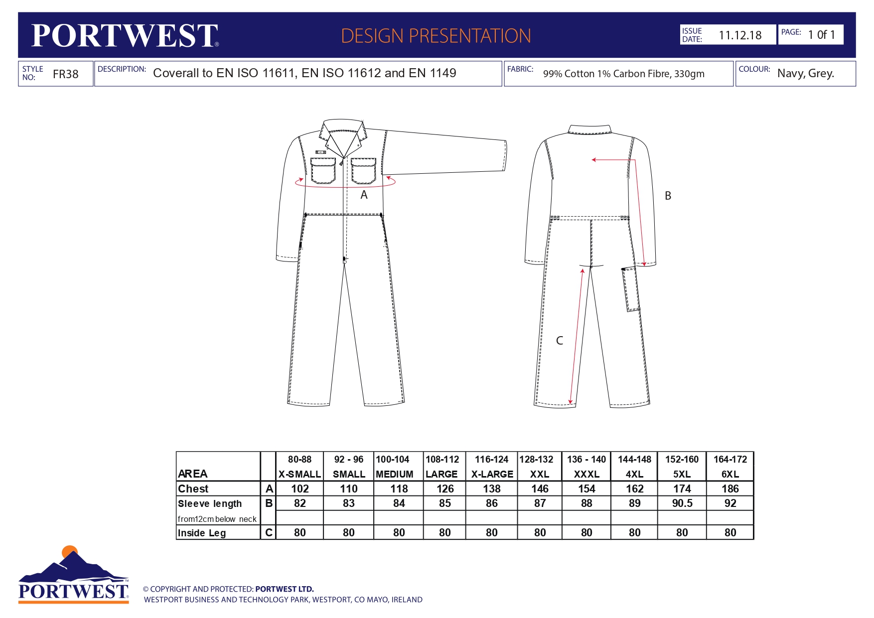 This classic coverall is a great addition to the flame resistant range. Offering lots of functional features such as a radio loop and concealed mobile phone pocket this style guarantees maximum comfort, performance and safety. Compliant with: EN 1149 -5, EN ISO 11612 A1+A2, B1, C1, E3, F1, EN ISO 11611 Class 1 A1+A2. Also features: CE-CAT III, Guaranteed flame resistance for life of garment, Protection against radiant, convective and contact heat, Certified protection against molten metal splash, Class 2 Welding Protection, Radio loop for easy clipping of a radio, Durable, strong and long lasting brass zip, Two-way zip for quick and easy access, 50+ UPF rated fabric to block 98% of UV rays & Side elastic waist for ultimate wearer comfort.