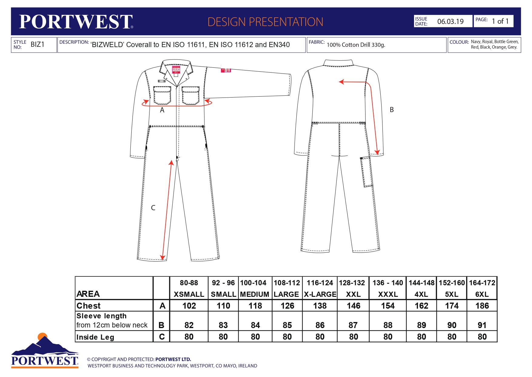 Voted the number one favourite coverall in the welding industry, our best selling Bizweld coverall is ideal for offering complete protection to workers exposed to heat. The generous fit provides comfort and allows the wearer to work unhindered whilst ample storage space, rule pocket and concealed mobile phone pocket hold equipment securely and safely. Compliant with: ELIM TESTING IN PROGRESS, EN ISO 11612 A1+A2, B1, C1, E2, F1, ASTM F1959/F1959M-12 ATPV 11.2 CAL/CM2 (HAF = 80.4%), EN ISO 11611 Class 1 A1+A2. Also features: CE-CAT III, Protection against radiant, convective and contact heat, Certified protection against molten metal splash, Dual hazard protection, Class 2 Welding Protection, Premium sew on flame resistant reflective tape, Concealed stud front for easy access, 10 pockets for ample storage, Stud adjustable cuffs for a secure fit, Radio loop for easy clipping of a radio