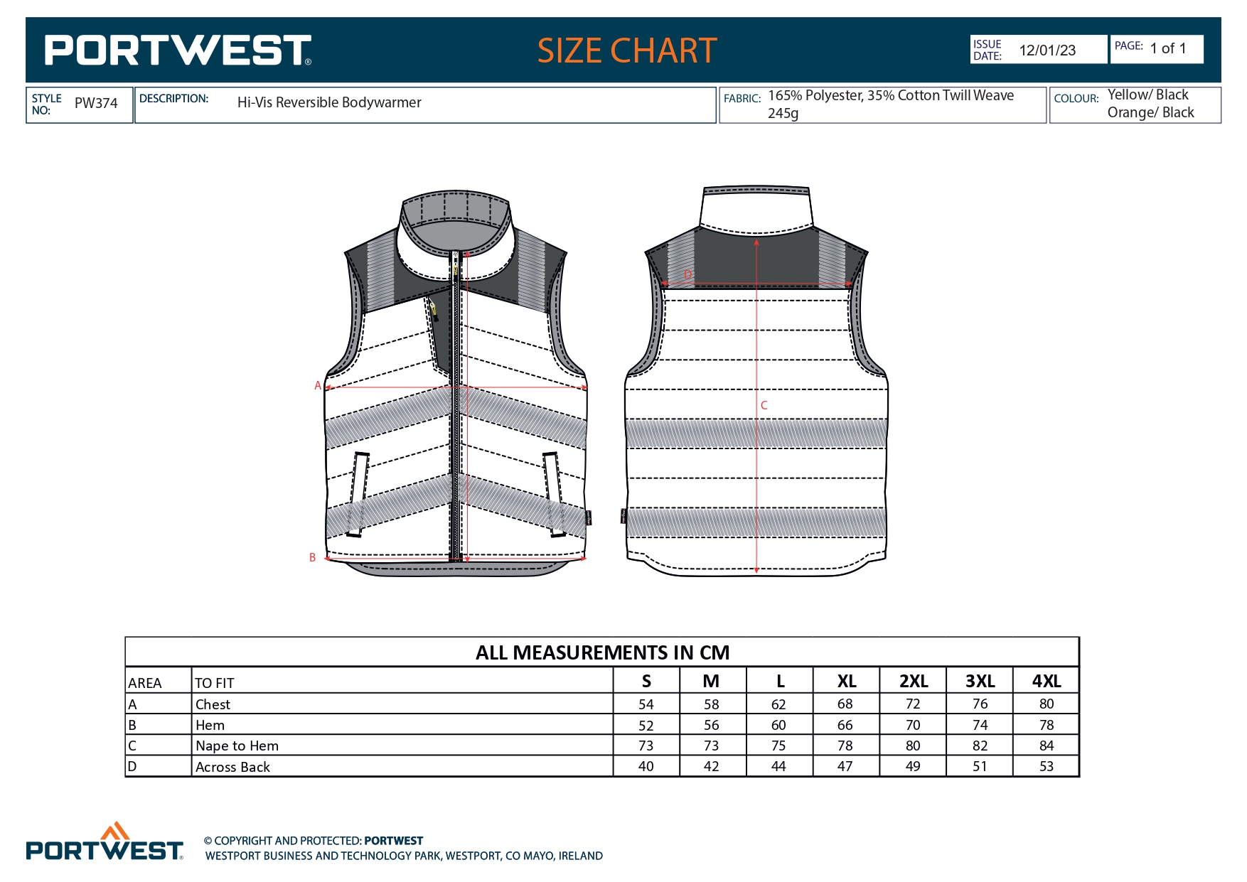 This innovative bodywarmer design is characterised by its stylish contemporary fit, multiple practical features and durable stain resistant fluorescent fabric. The heavyweight padding provides optimum warmth and comfort while the reversible feature makes it highly adaptable to both work and leisure. Complies with EN ISO 20471 Class 1 Size S & M, EN ISO 20471 Class 2 Size L UPWARDS, RIS-3279-TOM ISSUE 1 (ORANGE ONLY). Also features: CE certification, Durable polyester/cotton fabric with Texpel stain resistant finish, Lightweight flexible HiVisTex Pro segmented reflective tape for increased visibility, Reversible garment for multi use, 6 pockets for ample storage, Phone pocket, Quilt lined for thermal insulation, Multiple utility pockets providing ample storage & D-ring for keys or ID cards.