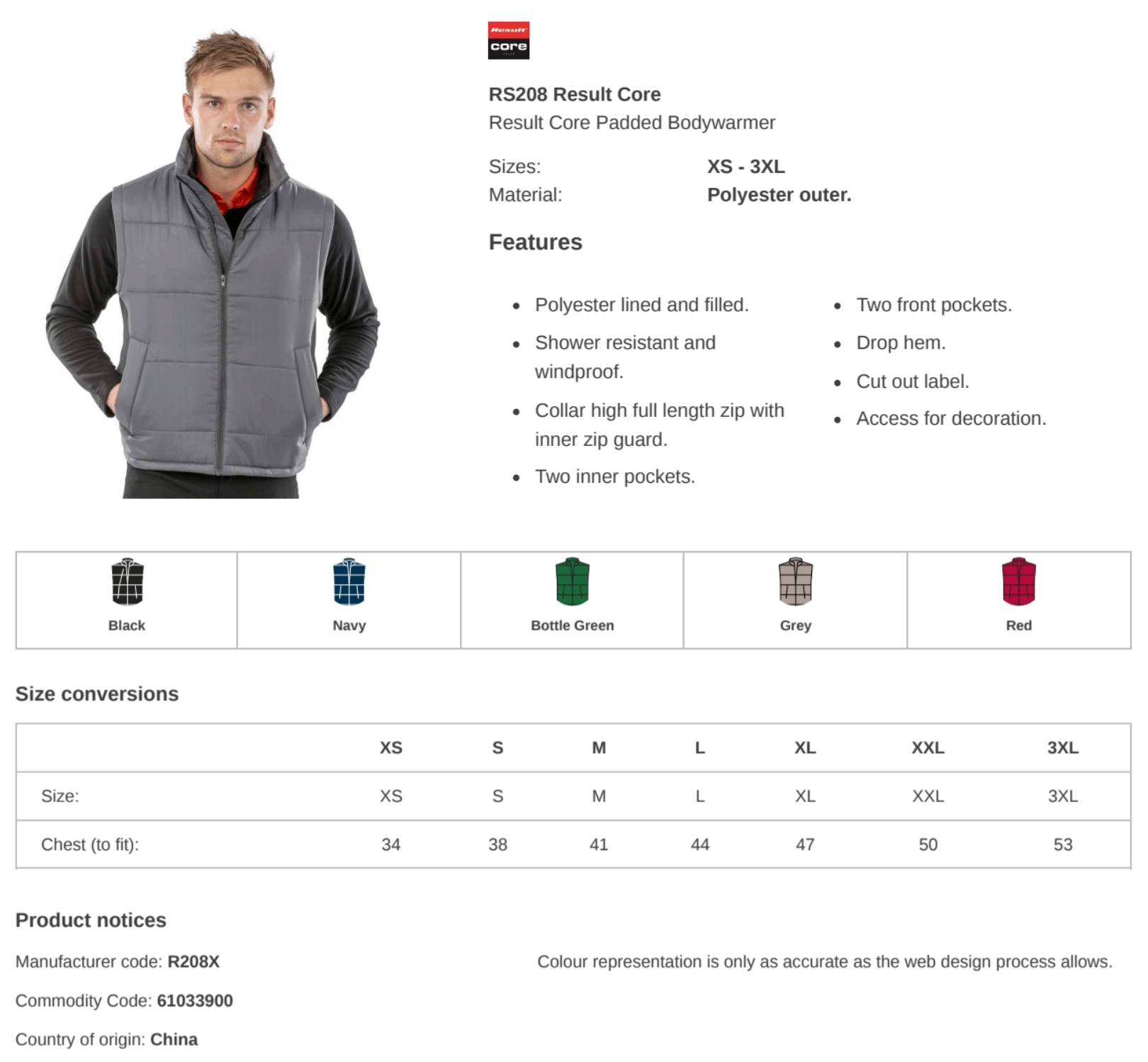 | Colour | RS Black, RS Bottle Green, RS Grey, RS Navy, RS Red |