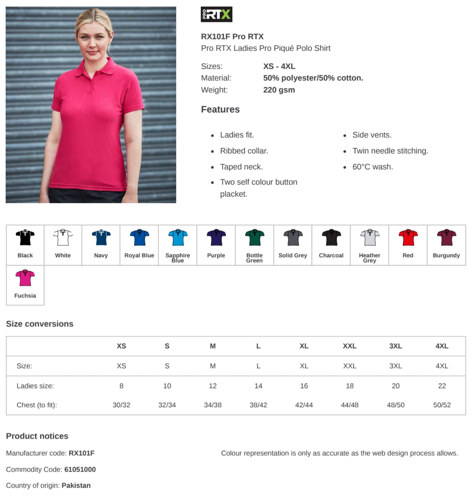 | Colour | RTX Black, RTX Bottle Green, RTX Burgundy, RTX Charcoal, RTX Fuchsia, RTX Heather Grey, RTX Navy, RTX Purple, RTX Red, RTX Royal Blue, RTX Sapphire Blue, RTX Solid Grey, RTX White |
