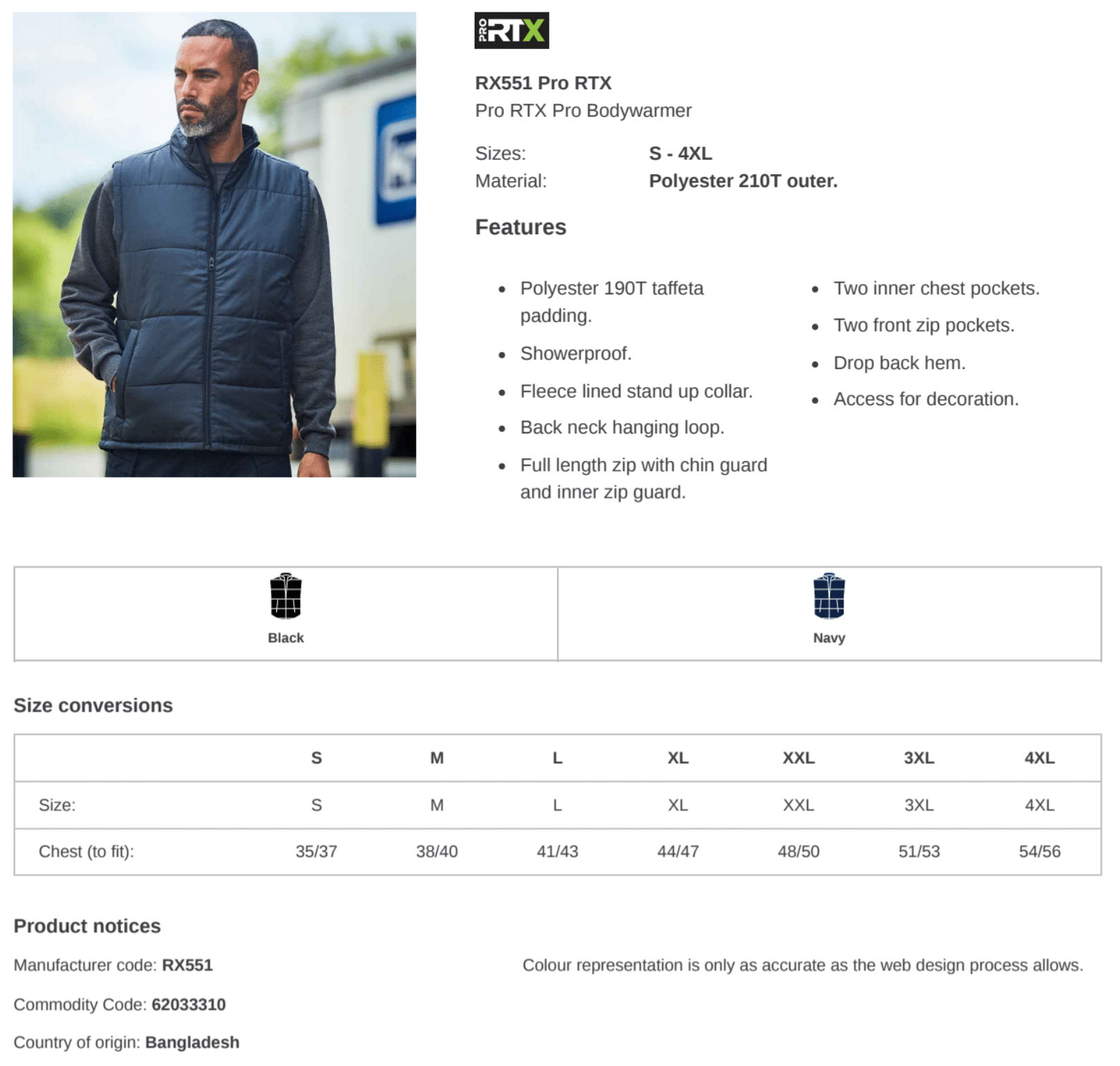 This Showerproof Polyester 190T taffeta padded Bodywarmer by RTX is fleece lined with a stand up collar to keep you warm and cosy. Featuring an abundance of pockets 2 inner and 2 outer you can rest assured your belongings wont be far