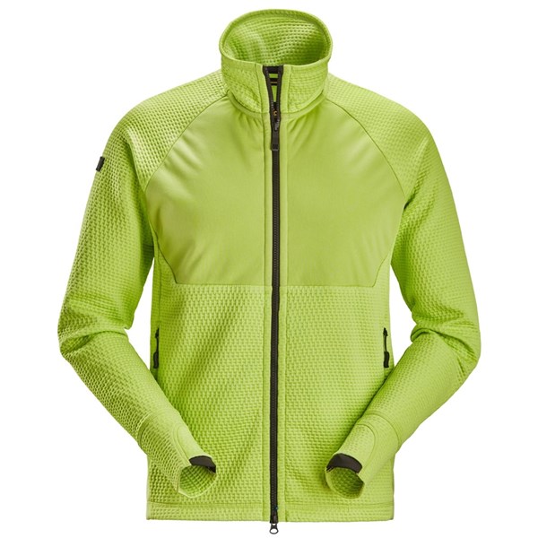 Made of double-knit thermal fabric that encapsulates air to retain warmth, this jacket has a great warmth-to-weight ratio. Wind-blocking softshell panels at the chest and raglan sleeves with thumb grip. 2-way front zipper for easy access to tools as well as plenty of pockets, including two inner stow pockets