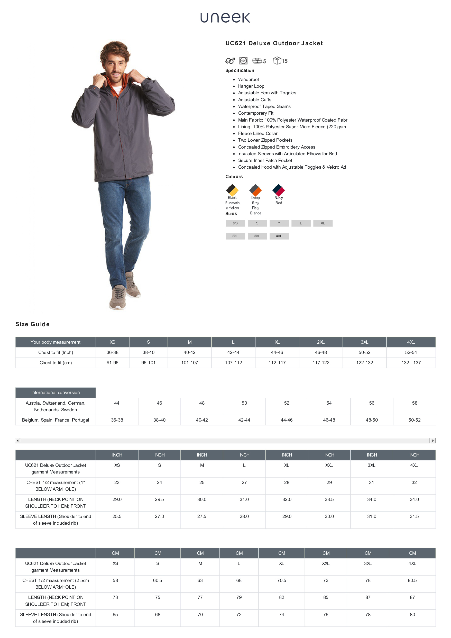 The main Fabric from this Jacket is 100% Polyester Waterproof Coated Fabric with a Water Penetration Rating of 5000mm & 100% Polyester Super Soft Micro Fleece Lining for Comfort & Warmth. Also features Insulated Sleeves with Articulated Elbows for a Better Fit and Ease of Movement, Fleece Lined Collar, Two Lower Zipped Pockets with a Concealed Hood. Adjustable Toggles & Velcro Adjustable Flap to Secure the Inner Patch Pocket while an Elasticated Hem with Adjustable Cuffs & Windproof Taped Seams keep the cold from creeping in while keeping you looking smart.