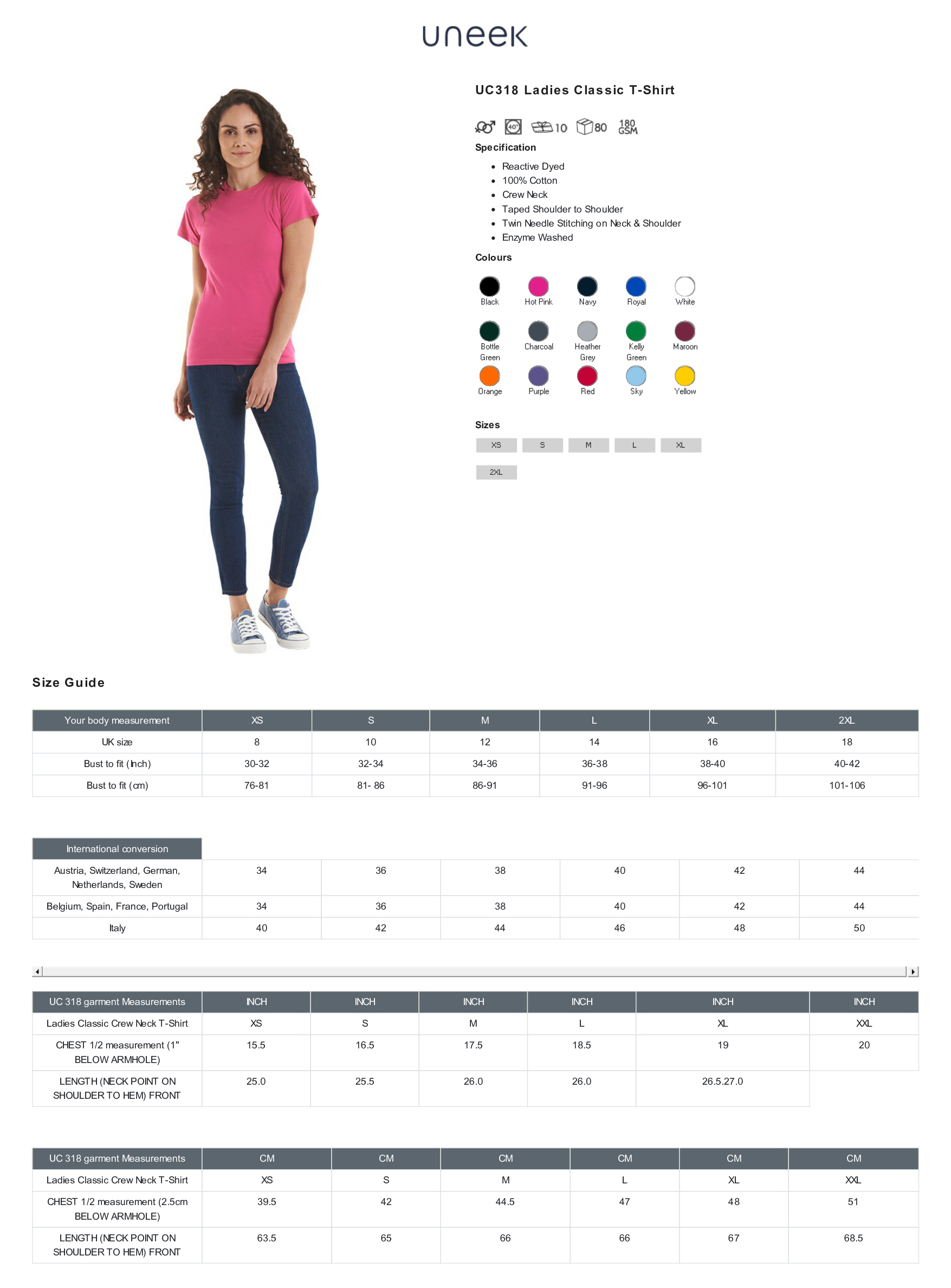 A Lightweight T Shirt perfect you’re beauticians, dance teachers or yoga teacher. Our favourite colour is the Hot Pink! The Ladies Fit version of our Classic T Shirt. Made from 100% Reactive Dyed cotton this T Shirt will hold its colour wash after wash. The fabric itself is enzyme washed to give it that extra soft feel and to reduce shrinkage. The shoulder seams are taped to give extra strength and the neck, shoulders and bottom hem have twin needle stitching for added durability.