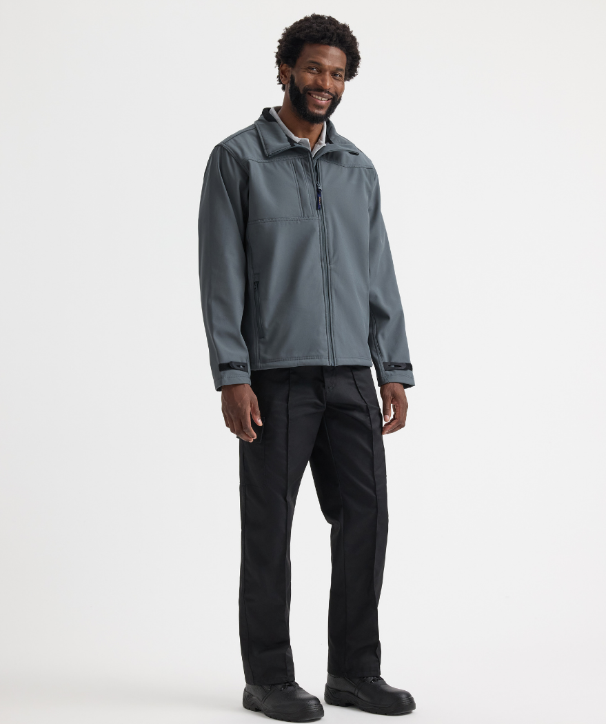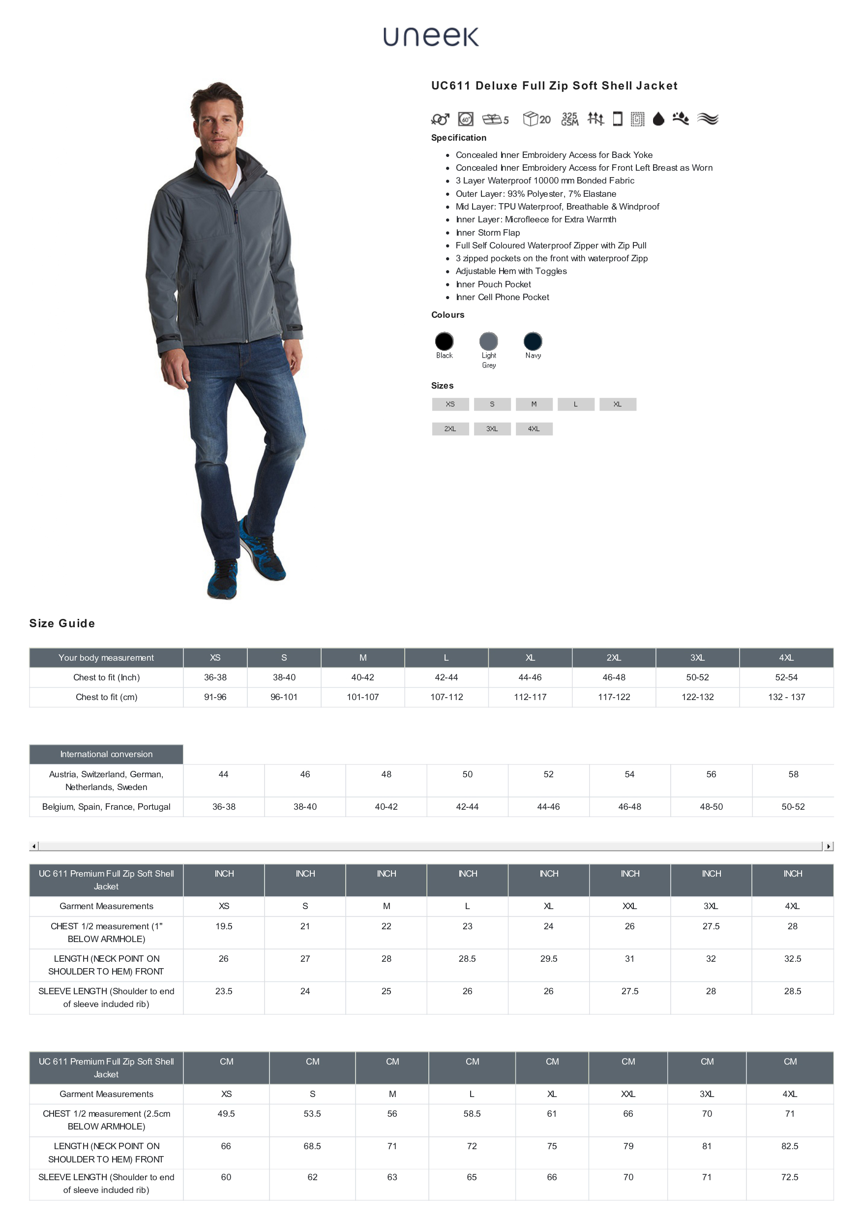 You are guaranteed of quality, comfort and a range of handy features with the Uneek Softshell Jacket. The 3 Layer 10000mm Bonded Fabric ensures optimal waterproof protection, meanwhile the inner membrane lining keeps the jacket breathable and cool to wear. There is also an microfleece lining for extra warmth. Comes with a full Self Coloured Waterproof Zipper with Zip Puller, 3 zipped pockets on the front and 2 Inner Pouch Pockets. All finished off with a sneaky inner mobile phone pocket to keep it close by.