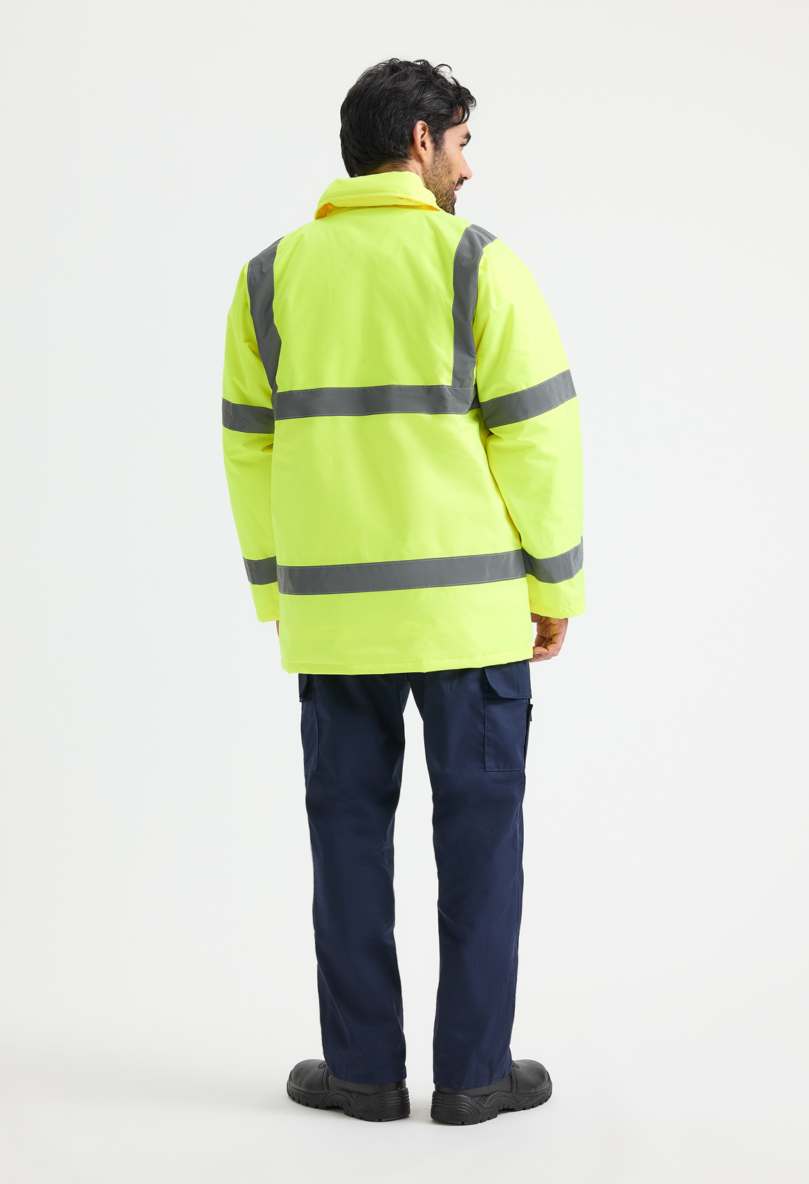 Complies with to EN ISO 20471:2013 Class 3 Approved, EN343 Class 3:1 Approved, GO/RT 3279 Issue 8 (Orange Only), 89/686/EEC Directive. The Outer Fabric is 300 Denier 100% Polyester PU Coated, Waterproof taped seams, 2 Retro Reflective Strips (50mm wide) stitched on and around the arms with one over each shoulder. Also features a hood with a drawcord under the collar, 1 zipped inner pocket under the flap near the chest, 1 inner pocket & 2 outer pockets with a studded flap, phone pocket on the right breast. Padded & lined for when stood at the roadside in the cold. Washable 25x.