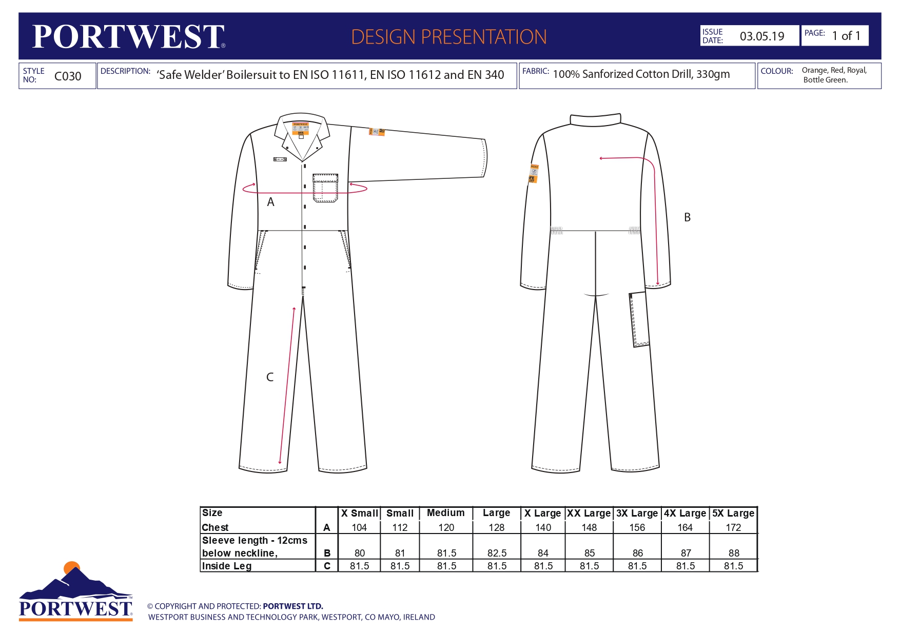 Offering complete protection all day long and fantastic value for money, the Safe-Welder™ Coverall is a great choice for welders and industrial workers who are exposed to heat. The side elastic gives the wearer a more comfortable fit and multiple pockets keep tools and personal belongings safe. Compliant with EN ISO 11612 A1+A2, B1, C1, E2, F1 & EN ISO 11611 Class 1 A1+A2. Also features: CE-CAT III, Guaranteed flame resistance for life of garment, Protection against radiant, convective and contact heat, Certified protection against molten metal splash, Class 2 Welding Protection, Side elastic waist for ultimate wearer comfort, Concealed stud front for easy access, Radio loop for easy clipping of a radio, Quick and easy side access & a Rule pocket.